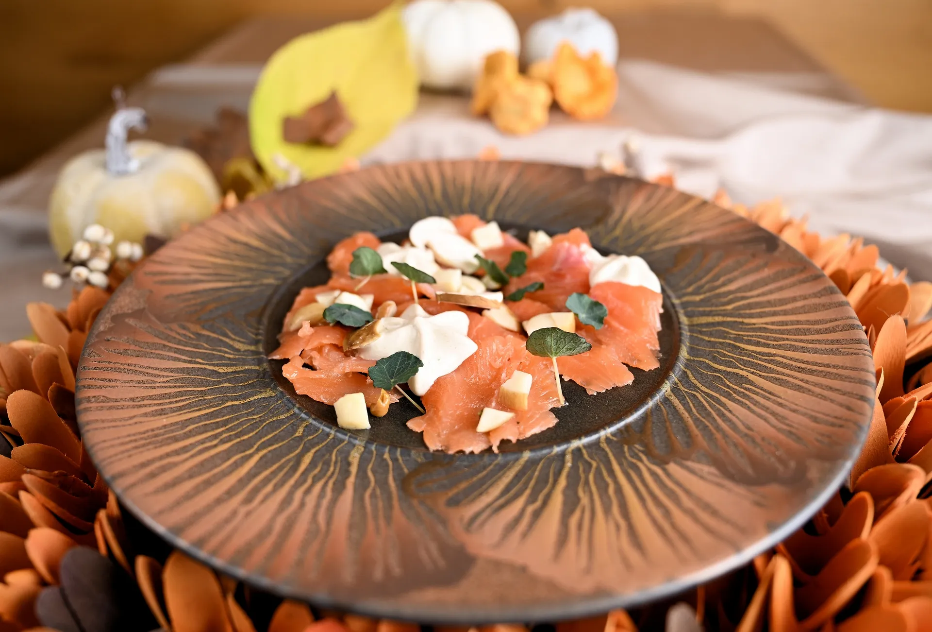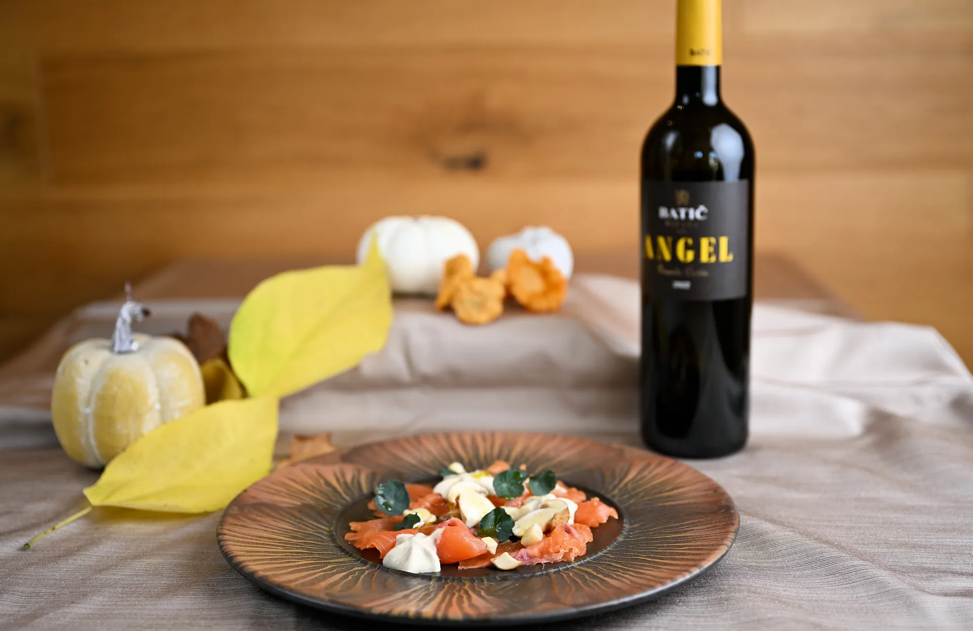 Carpaccio soške postrvi z vloženimi jurčki in jurčkovo peno